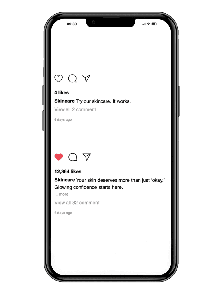 Includes posts, captions, and campaigns that get people to notice and interact with your brand